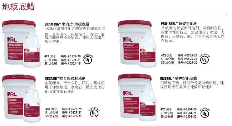 NCL致力于為我們的客戶創造地 板護理解決方案™,打造地板具 有顯著的光澤,無與倫比的耐 用性,和獨特的成本節約優勢。NCL的優質服務和產品創新是行業公認的。